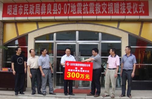 情牽災(zāi)區(qū) 心系災(zāi)民。按照云天化集團(tuán)公司的統(tǒng)一安排,9月10日,云天化股份公司總經(jīng)理劉和興一行親自將300萬元救災(zāi)款送到了昭通市民政局,以用于本次云南彝良地震災(zāi)區(qū)緊急救援和災(zāi)后重建,并送去了對災(zāi)區(qū)人民的深切慰問和深情祝福。